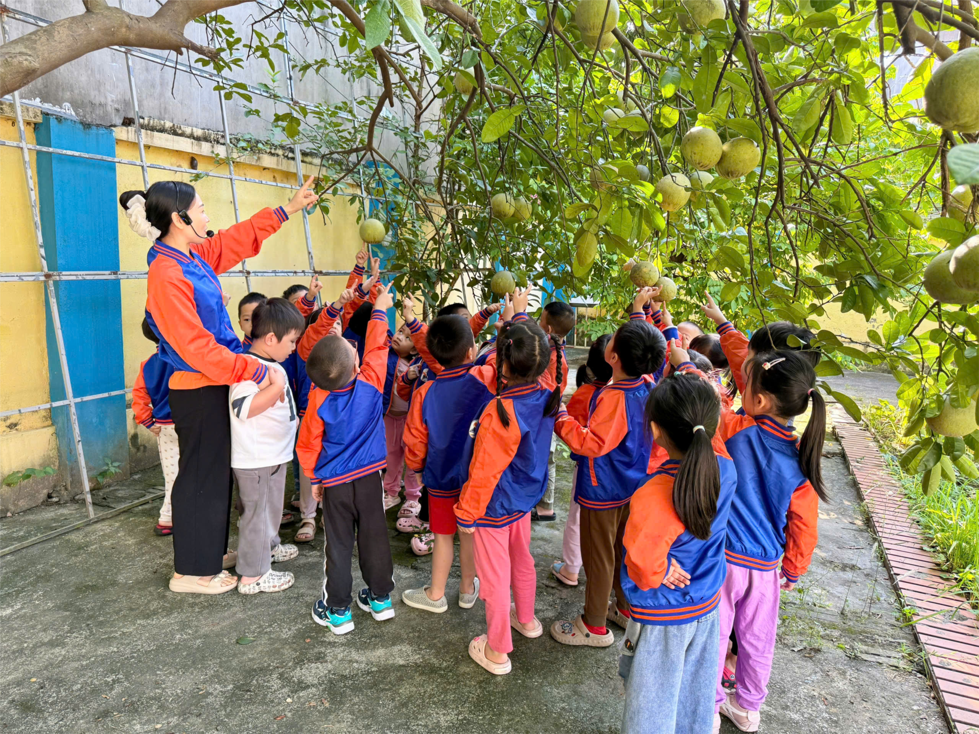 Dưới sự hướng dẫn của cô giáo, các bé được quan sát các loại cây ăn quả, nhận biết tên rau – quả, màu sắc, hình dáng và đặc điểm của từng loại. Hoạt động giúp trẻ thêm yêu thiên nhiên và hiểu hơn về thế giới thực vật quanh mình.