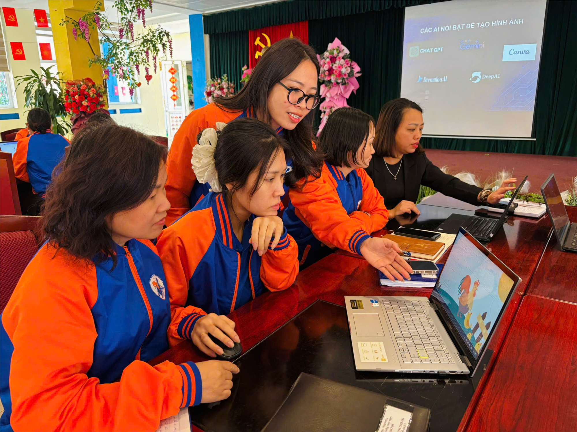 Buổi sinh hoạt diễn ra trong không khí cởi mở, tích cực, tập trung vào việc khai thác các ứng dụng trí tuệ nhân tạo (AI) để tạo hình ảnh phục vụ hoạt động chăm sóc, giáo dục trẻ mầm non. Tại chuyên đề, giáo viên được giới thiệu một số công cụ AI phổ biến, dễ sử dụng để tạo hình ảnh minh họa cho bài giảng, câu chuyện, trò chơi và các hoạt động trải nghiệm. Các bước thực hành được hướng dẫn cụ thể, từ cách nhập nội dung, lựa chọn phong cách hình ảnh đến điều chỉnh cho phù hợp với độ tuổi của trẻ. Bên cạnh đó, giáo viên cùng trao đổi về cách sử dụng hình ảnh AI an toàn, hiệu quả, đảm bảo tính giáo dục và thẩm mỹ.