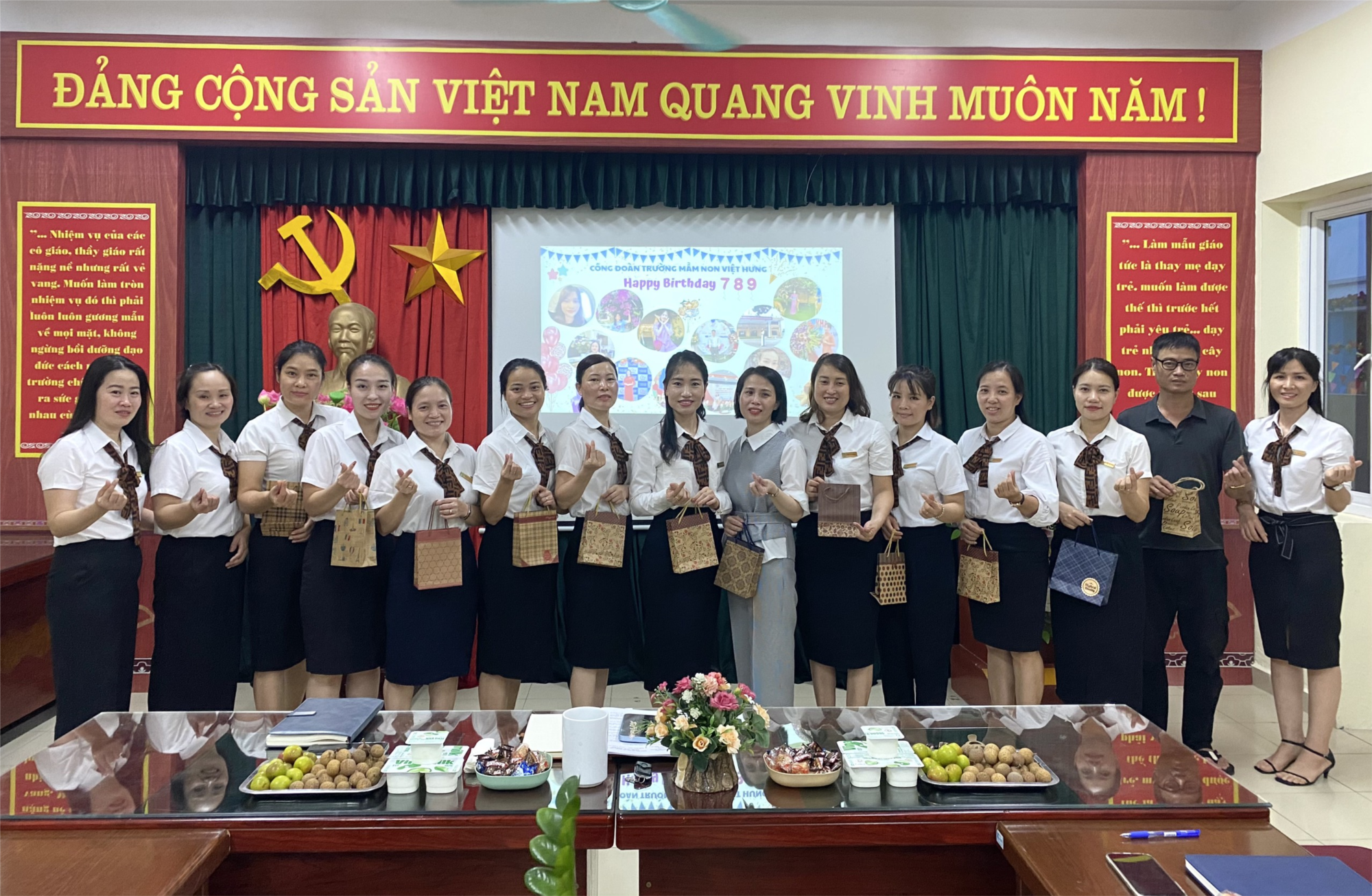 Như thông điệp đẹp đẽ thường lệ, tổ chức sinh nhật hàng quý được Công đoàn trường Mầm non Việt Hưng duy trì và phát huy vào giữa mỗi quý. Đây là hoạt động rất thiết thực và ý nghĩa nhằm quan tâm, chăm lo đến đời sống vật chất, tinh thần cho toàn thể cán bộ giáo viên, nhân viên của trường, góp phần thực hiện nếp sống văn minh - xây dựng đời sống văn hóa trong nhà trường.