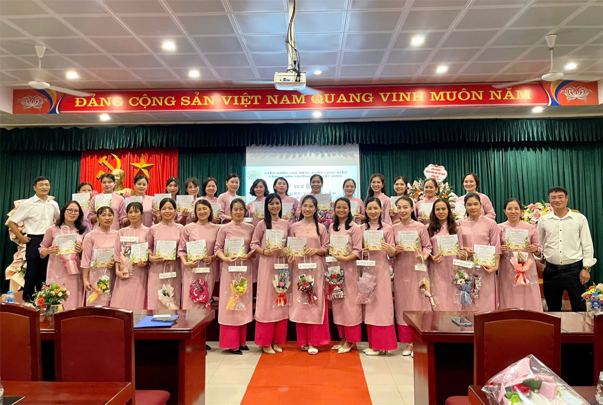 Tại buổi lễ, BCHCĐ nhà trường cũng đã gửi tặng các nữ công đoàn viên món quà chúc mừng ngày 20/10. Chúc cho tất cả chị em phụ nữ ngày 20/10 tràn ngập niềm vui, hạnh phúc và gặt hái được nhiều thành công.