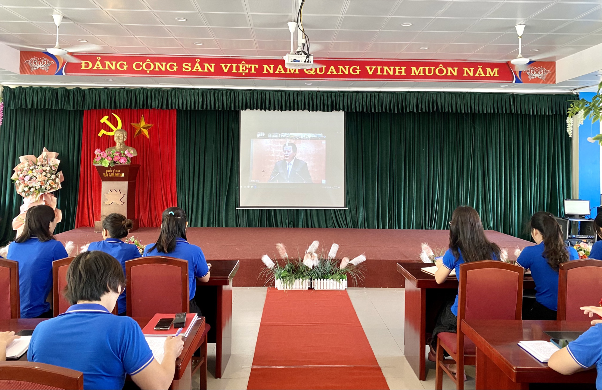 Dự điểm cầu Đ/c Đặng Thị Thanh Xuân - Bí thư chi bộ, Hiệu trưởng & Cùng toàn thể các đ/c Đảng viên trong chi bộ tham dự đông đủ.