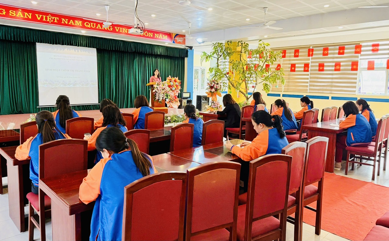 Dưới sự chủ trì của đồng chí Đặng Thị Thanh Xuân – Bí thư chi bộ, Hiệu trưởng nhà trường. Tại buổi Sinh hoạt chính trị tập trung quán triệt các nội dung: