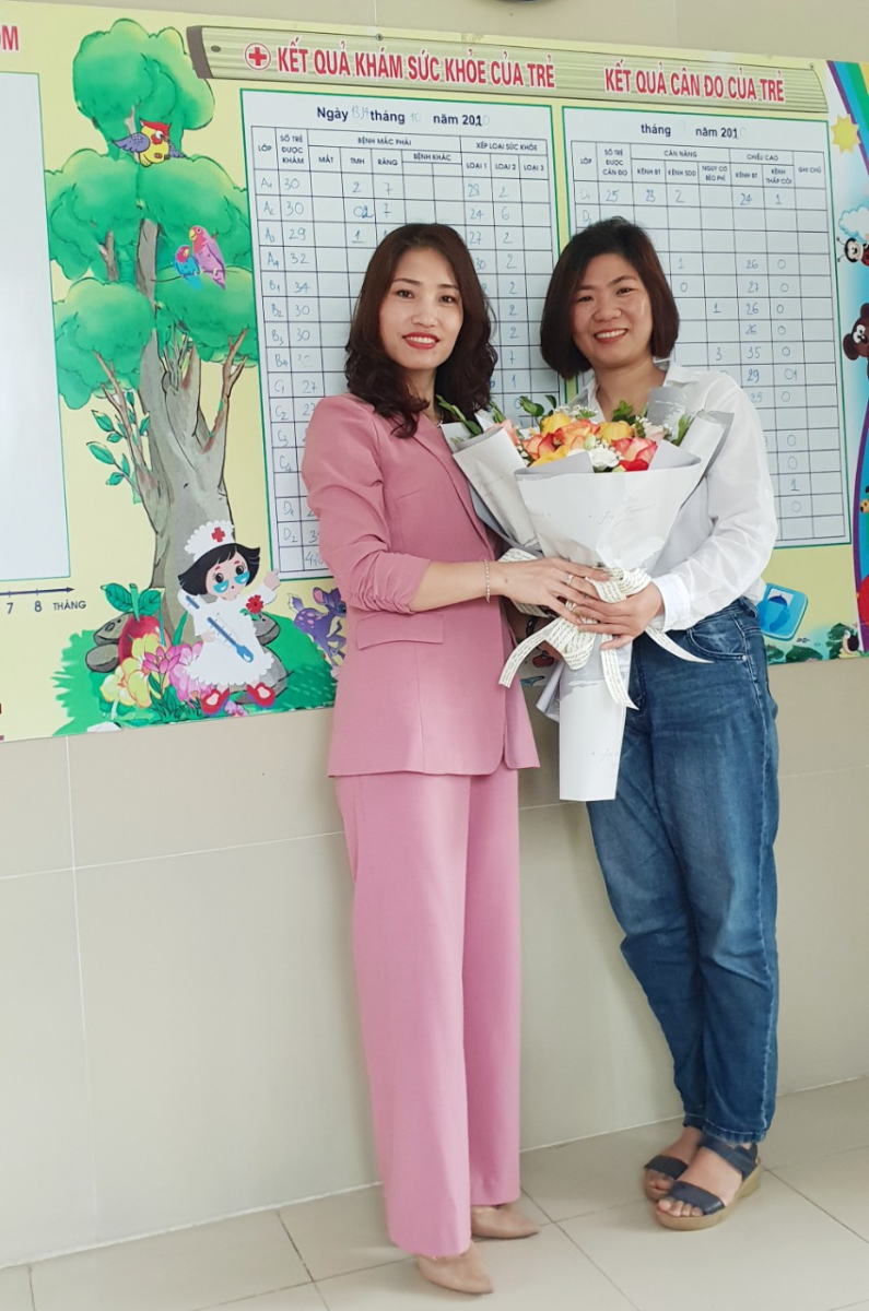 Nhân ngày Thầy thuốc Việt Nam 27/2/2021, đại diện trường MN Việt Hưng : Đ/c Đặng Thị Thanh Xuân – Bí thư chi bộ, Hiệu trưởng nhà trường gửi tới đ/c Nguyễn Thị Minh Thu – nhân viên y tế nhà trường lời chúc sức khỏe, hạnh phúc, luôn yêu nghề và hoàn thành xuất sắc nhiệm vụ được giao, xứng đáng với sự trân trọng và tin tưởng của PHHS nhà trường ‘Thầy thuốc như mẹ hiền’.