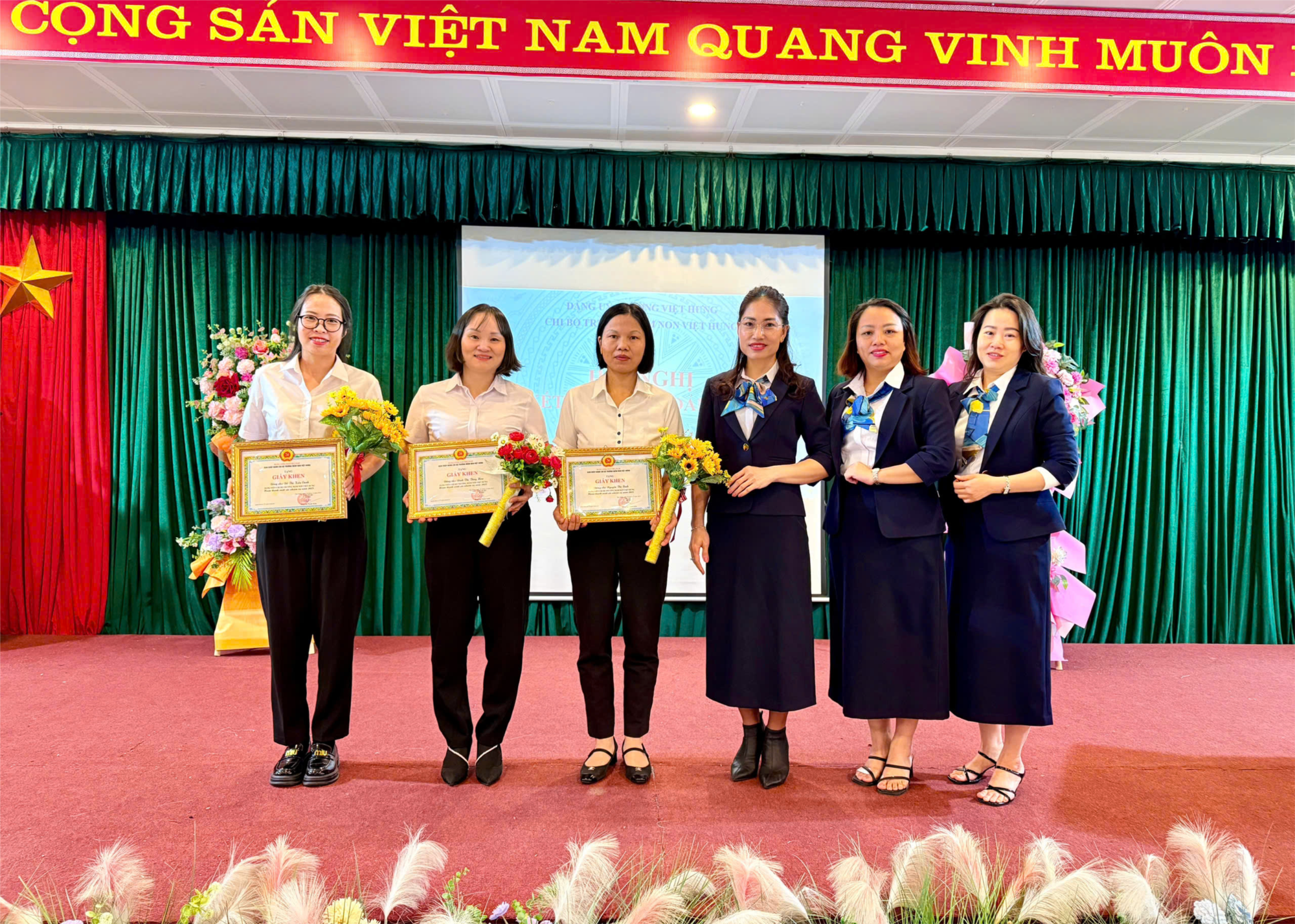 Cũng tại Hội nghị, BGH, Chi bộ Trường mầm non Việt Hưng đã tuyên dương, khen thưởng 03 đồng chí đảng viên hoàn thành Xuất sắc nhiệm vụ năm 2025: Đ/c Đinh Thị Thuý Hoà, Đỗ Thị Kiều Oanh, Nguyễn Thị Bình. Để đạt được kết quả này, bản thân các đồng chí đã không ngừng nỗ lực cố gắng trong thực hiện nhiệm vụ, gương mẫu, rèn luyện ý chí của người cán bộ đảng viên trong công tác xây dựng Đảng. Và đây cũng chính là động lực, niềm tin để giúp cán bộ đảng viên cùng Chi bộ Trường mầm non Việt Hưng tiếp tục phấn đấu thực hiện thắng lợi Nghị quyết chi bộ nhiệm kỳ 2025-2030, mục tiêu nhiệm vụ công tác năm 2026 đã đề ra, thiết thực lập thành tích Chào mừng Đại hội Đảng toàn quốc lần thứ XIV thành công rực rỡ./.