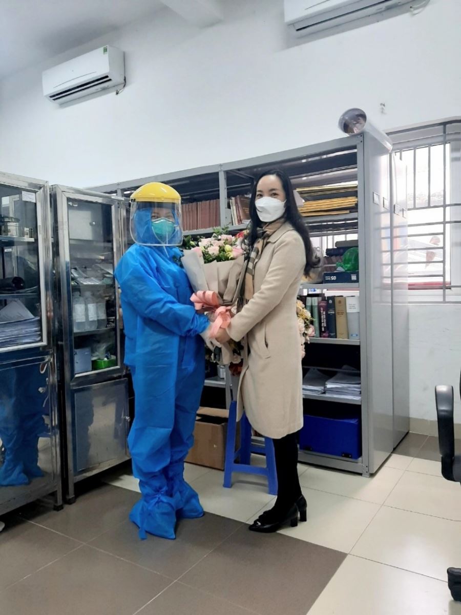 Đại diện Trường MN Việt Hưng đến gửi lời chúc tới các Thầy thuốc, y, bác sĩ Trạm y tế phường Việt Hưng