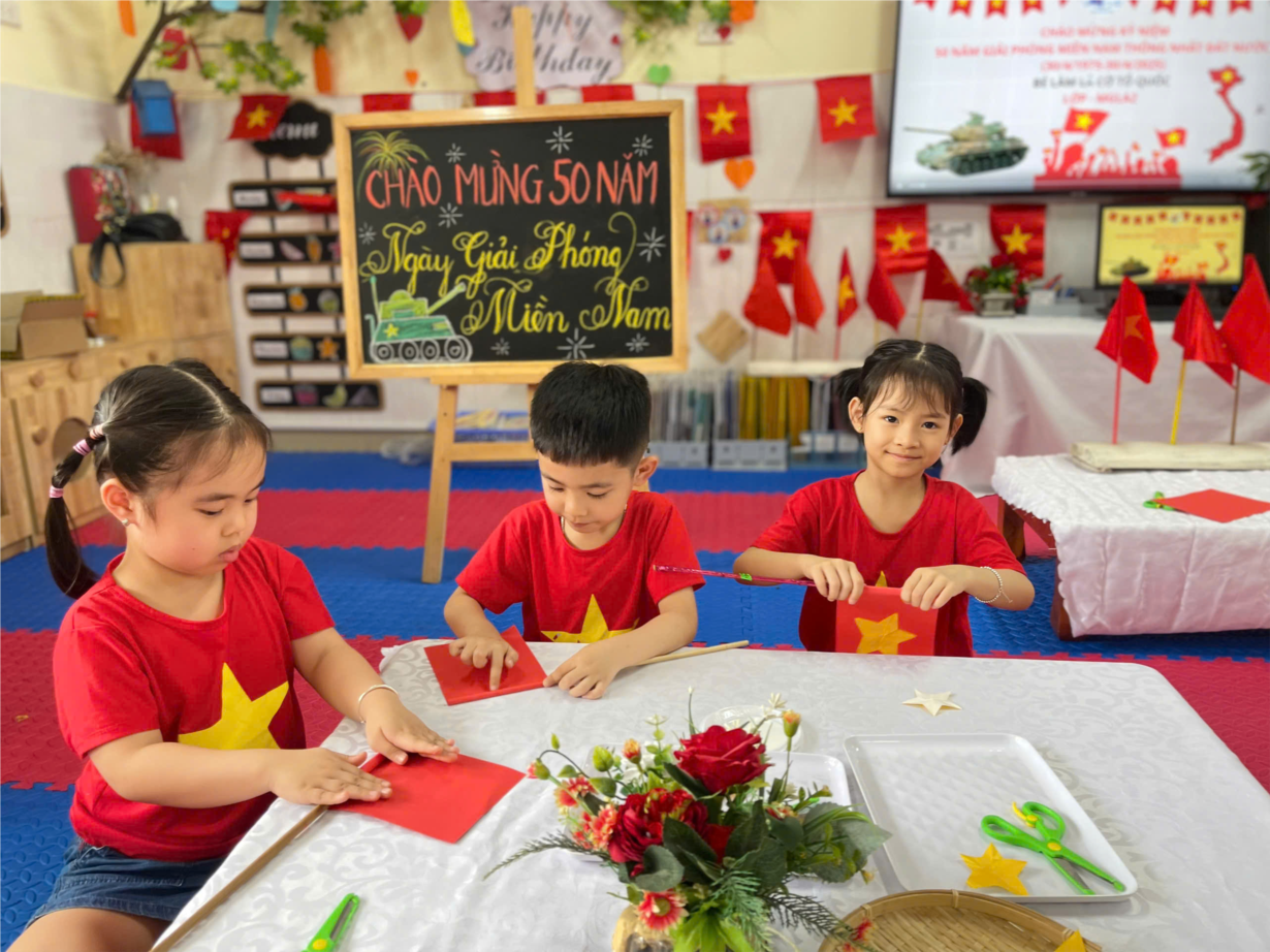 Thư viện ảnh tháng 4: Hoạt động chào mừng kỷ niệm 50 năm Ngày giải phóng miền Nam, thống nhất đất nước của các bạn nhỏ lớp MGL A2.