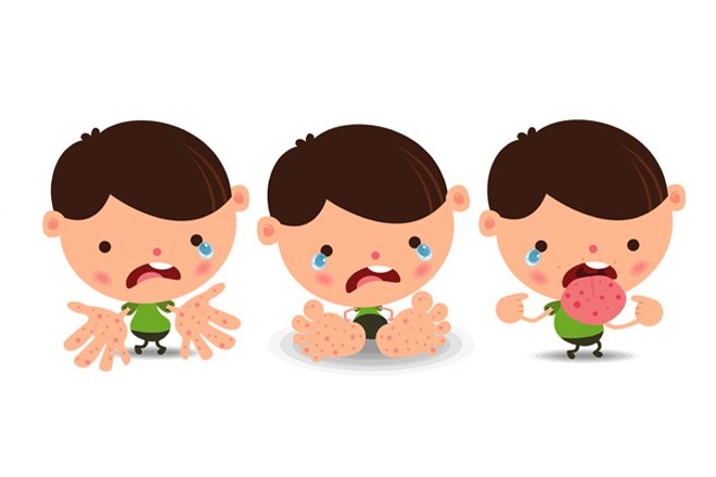 Hệ miễn dịch của bé còn yếu nên khi thời tiết không thuận lợi như hè sẽ làm bé dễ mắc bệnh tay chân miệng. Ảnh Internet