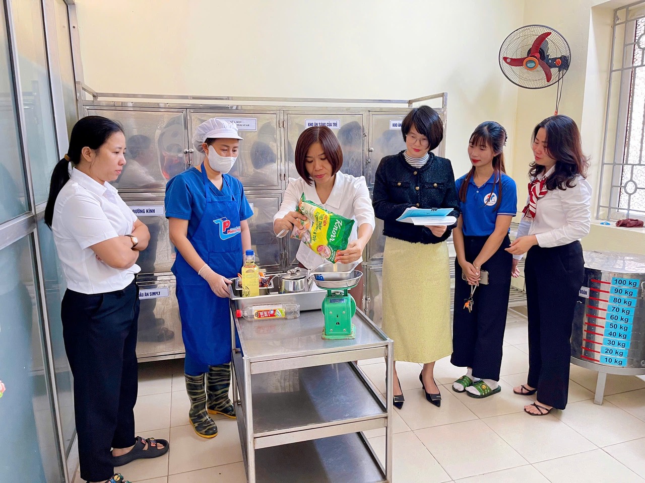 Để đảm bảo vệ sinh an toàn thực phẩm, đảm bảo bữa ăn đủ chất và định lượng calo giúp trẻ phát triển một cách tốt nhất. Nhà trường luôn chú trọng thực hiện công tác giao nhận thực phẩm hằng ngày, công khai minh bạch, quét mã truy xuất nguồn gốc Thực phẩm.