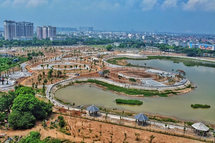 Toàn cảnh Công viên Khu đô thị mới Việt Hưng nhìn từ trên cao