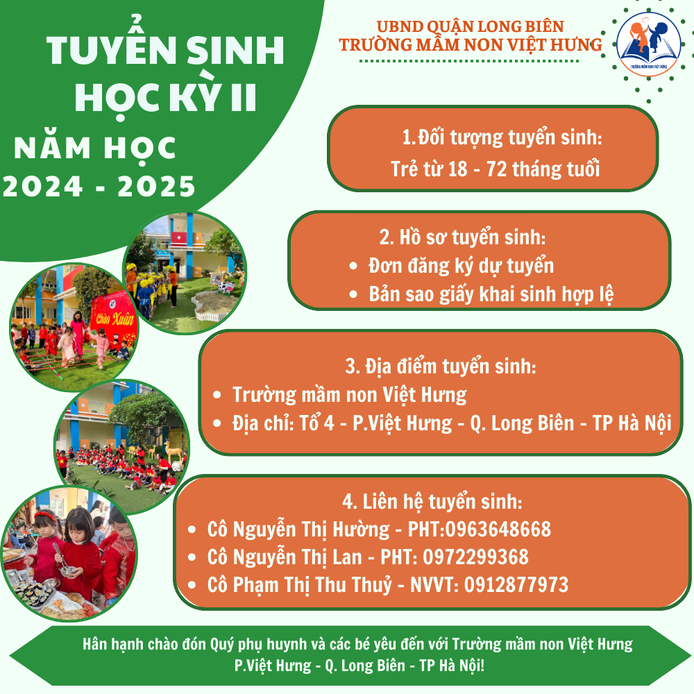 Trường Mầm non Việt Hưng Thông báo tuyển sinh học kỳ II năm học 2024 -2025: