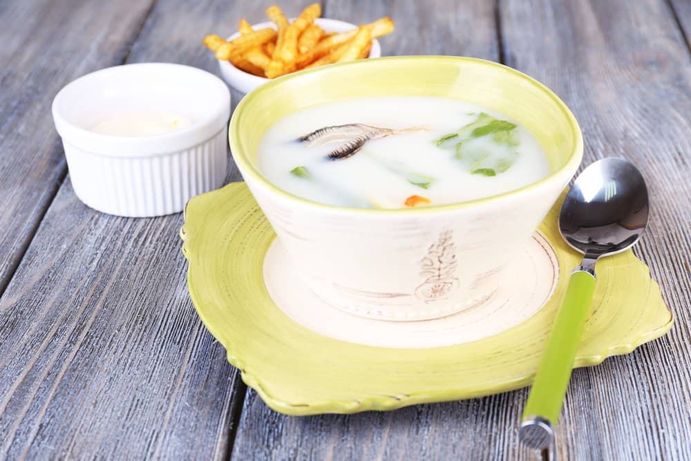 - Nêm hành, gừng, ngò xắt sợi. Bạn cho bé ăn kèm với rau tần ô hoặc cải bẹ xanh cắt nhỏ.
