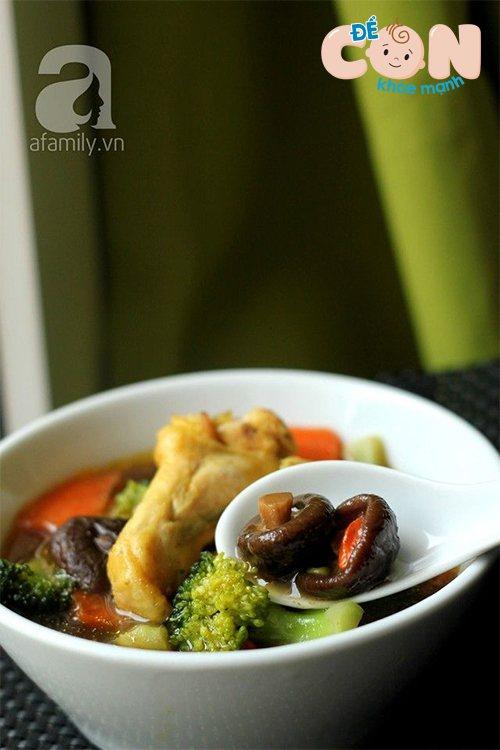 Canh gà nấm nóng hổi đưa cơm cho bé