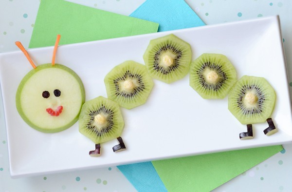 Thay cho hình ảnh chú sâu bướm thường ngày trông xấu xí bằng hình ảnh chú sâu bướm trái cây thật đáng yêu. Bé sẽ thích thú khi được mẹ làm những món ăn sinh động như thế này đấy.