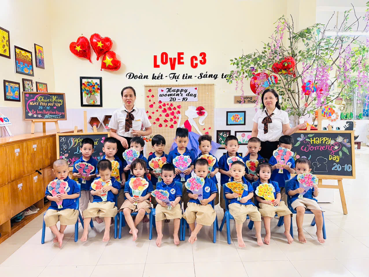 Nhân ngày Phụ nữ Việt Nam 20/10 các bé lớp MGB-C3 trường mầm non Việt Hưng xin các bà , các mẹ các chị em những lời chúc tốt đẹp nhất , luôn mạnh khoẻ ,xinh đẹp và hạnh phúc .Chúc ngày 20/10 thật ý nghĩa luôn ngập tràn yêu thương .