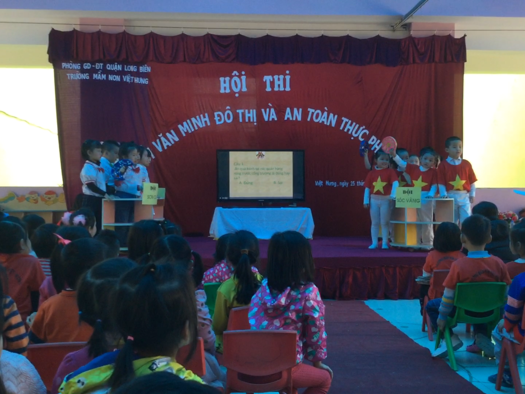 Ngày 25 tháng 11 năm 2016, trường mầm non Việt Hưng tổ chức hội thi “Bé với văn minh đô thị và an toàn thực phẩm” cho học sinh khối mẫu giáo lớn. Đến với hội thi có đại diện phụ huynh học sinh nhà trường và phụ huynh học sinh các lớp. Và đặc biệt là sự có mặt của 24 bạn nhỏ đại diện cho 4 lớp mẫu giáo lớn.
