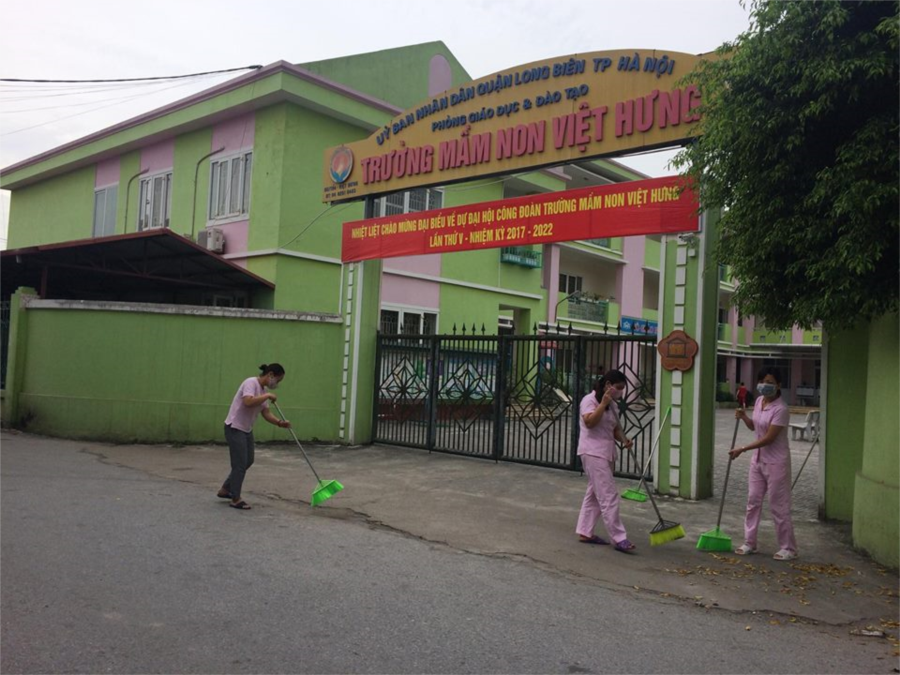 Nhằm đẩy mạnh công tác vệ sinh môi trường phòng chống dịch bệnh sốt xuất huyết, sáng ngày 12/8/2017 tập thể cán bộ giáo viên nhân viên trường mầm non Việt Hưng ra quận tổng vệ sinh các khu vực xung quanh trường, khu vực sân trường, vườn trường và các lớp học.