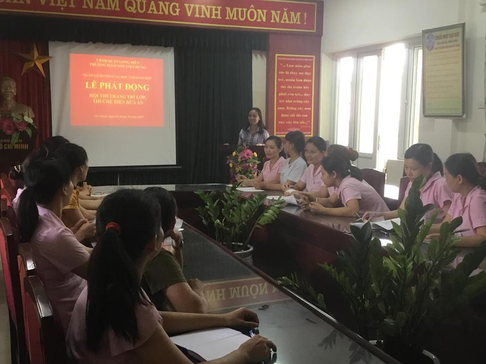 Thực hiện kế hoạch số 01 ngày 19/9/2018 của phòng UBND Quận Long Biên về việc triển khai các hoạt động tuần lễ hưởng ứng học tập suốt đời năm 2018, sáng ngày 1/10/2018, trường MN Việt Hưng trọng tổ chức lễ phát động “Tuần lễ hưởng ứng học tập suốt đời” năm 2018