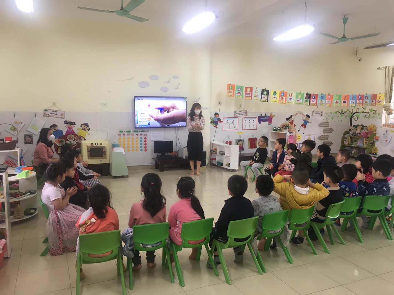 Sau gần một tháng nghỉ học để phòng chống dịch Covid-19. Ngày 02/3/2021, các bé trường mầm non Việt Hưng được quay trở lại trường với các hoạt động thường niên. Hoạt động đầu tiên các bé được các cô hướng dẫn đó là hoạt động học về đại dịch Covid-19 và cách phòng tránh lây truyền sang các bé mầm non. Các bé học sinh mầm non nếu không biết cách tự bảo vệ mình sẽ rất nguy hiểm khi phải đối mặt với nguồn lây nhiễm dịch bệnh Covid-19. Vì vậy, nhà trường đã họp tổ chuyên môn và quyết định đưa hoạt động học này vào nội dung ưu tiên trong chương trình giảng dạy, việc đưa nội dung này vào buổi học đầu tiên nhấn mạnh tầm quan trọng của phòng dịch Covid-19 ở mọi lứa tuổi.